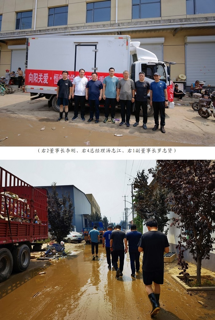 2023年8月9日,在前期充分溝通基礎上,恒銀公司董事長李剛同志帶領高管班子、支部黨員、業務骨干一行7人赴受災嚴重地區涿州市東城坊鎮寧村慰問受災群眾,捐贈了當地急需的飲用水、方便食品、消毒液、電腦及打印機等價值2萬余元的救災物資。