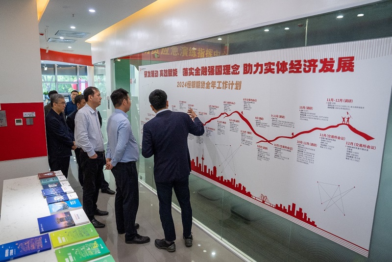 4月17日下午,河北省國資委黨委委員、副主任徐科華到國富投資集團所屬恒銀期貨有限公司調研指導工作,了解了恒銀公司的整體情況,參觀了恒銀公司的直播間、信息技術部、黨建長廊、期貨投教基地等部門,重點了解了雞蛋、生豬等與國計民生息息相關的期貨產品的區間走勢,并對期貨交割庫在河北省的具體分布和發揮的作用等情況進行了深入交流溝通。