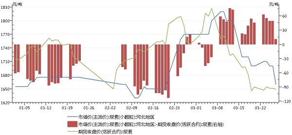 期貨方面,在經歷了兩周的大幅下跌之后,本周尿素期貨逐步止跌企穩,主力UR2005合約基本圍繞著1650元/噸一線上下20元窄幅波動。雖國外疫情延續快速蔓延態勢,宏觀風險猶存,但各國與國際組織陸續出臺相關經濟刺激政策,市場恐慌情緒有所緩解,包括尿素在內的多數工業品價格止跌企穩,但受累于當前相對疲軟的基本面,尿素期貨反彈動能仍顯不足,期價呈現低位震蕩格局。