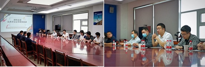 2022年9月24日,在河北證監局、河北省證券期貨業協會的指導下,恒銀期貨有限公司(以下簡稱“恒銀期貨”)以開展金融知識普及宣傳月系列活動為契機,在副總經理湯志江的帶領下,走進上市公司--河北匯金集團股份有限公司(以下簡稱“匯金股份”)宣講金融知識普及月相關知識,并進行產業參觀學習。